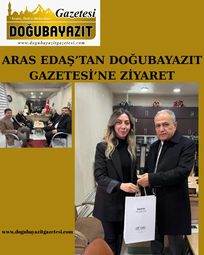 Aras EDAŞ Ağrı İl Koordinatörü Cemal Erkoç, Aras EPAŞ İl Müdürü Yılmaz Sütçü, Doğubayazıt İlçe Müdürü Kemal Turan ve Sistem İşletme Müdürü Mustafa İdacı, Doğubayazıt Gazetesi sahibi Dengi Çelik'i ziyaret etti.
