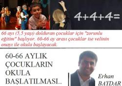 Bu yıl 60 aylık çocuklar, velisinin isteğiyle okula gidebilecek. "60-66 aylık ara denilen yaş grubu çocukların okula kaydı velinin tercihine bırakılacak, Veli isterse çocuğunu anasınıfına, isterse 1. sınıfa başlatabilecek. Yetkililer, Birçok çocuğun fiziki olarak 60 aylık olduğunda, okula başlayabilecek konuma geldiğini, bazı çocukların ise az gelişmiş olduğunu, bu çocukların okula başlatılmasının velinin takdirinde olduğunu belirtmektedirler. Talim Terbiye Kuruluda, bu çocukların ders müfredatını yeniden belirlemektedir.. Bu öğrenciler, birinci dönemi biraz daha anasınıfına yakın, çevreyi tanıma, oyun oynama, öz bakım becerileri geliştiren, biraz daha basit bir eğitimle tamamlayacaklar.