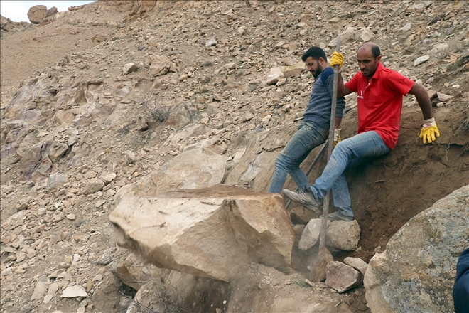 Iğdır´a bağlı Erhacı köyünde yaşayan taş işçileri, Ağrı Dağı´nın volkanik patlaması sonucu civara yayılan lavların oluşturduğu taşlardan gelir elde ediyor.