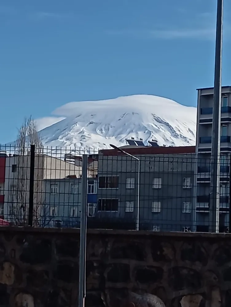 "Türkiye’nin çatısı" olarak bilinen Ağrı Dağı, zirvesindeki beyaz örtüsüyle göz kamaştırıyor.