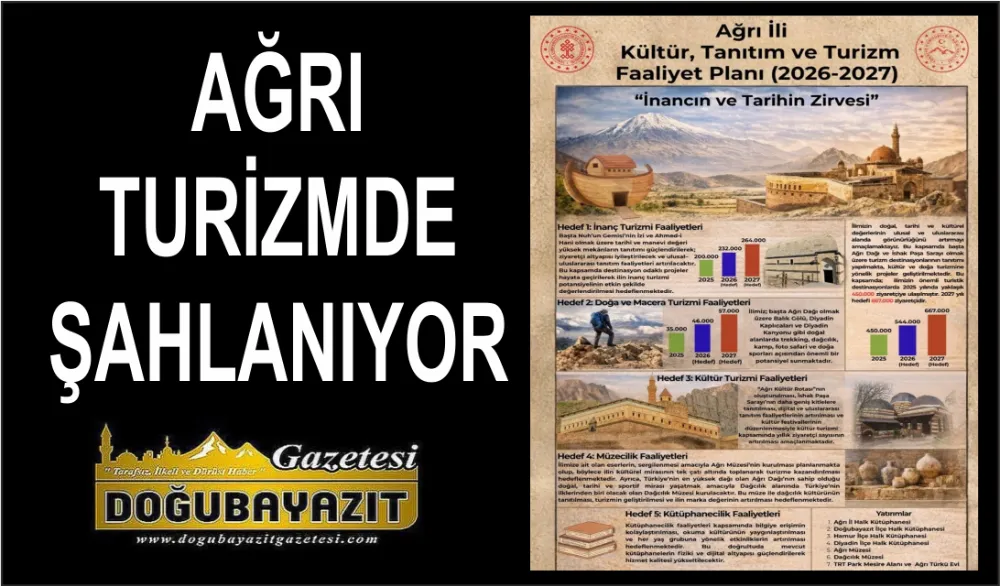 Ağrı Valiliği himayesinde, Kültür ve Turizm İl Müdürlüğü koordinasyonunda hazırlanan ve ilimizin geleceğine ışık tutacak olan "2026-2027 Kültür, Tanıtım ve Turizm Faaliyet Planı" resmen açıklandı.