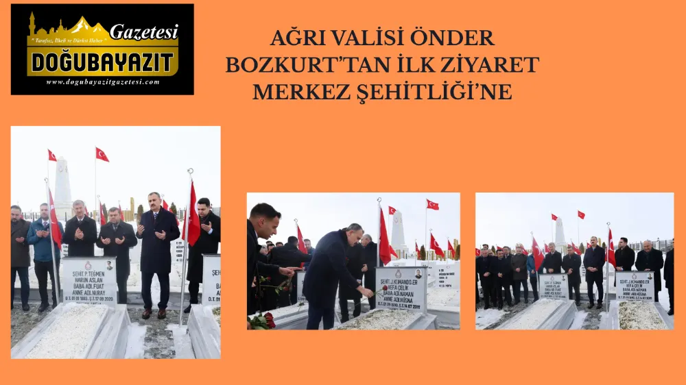 Ağrı Valisi Sayın Önder Bozkurt, göreve başlamasının ardından ilk ziyaretini, bu toprakları vatan kılan aziz şehitlerimizin ebedî istirahatgâhı olan Merkez Şehitliği’ne gerçekleştirdi.