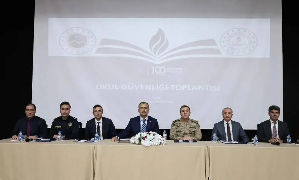 Ağrı’da eğitim kurumlarının güvenliğine yönelik önemli bir toplantı gerçekleştirildi. Vali Önder Bozkurt başkanlığında düzenlenen geniş katılımlı toplantıda, okullarda alınacak güvenlik tedbirleri kapsamlı şekilde ele alındı.