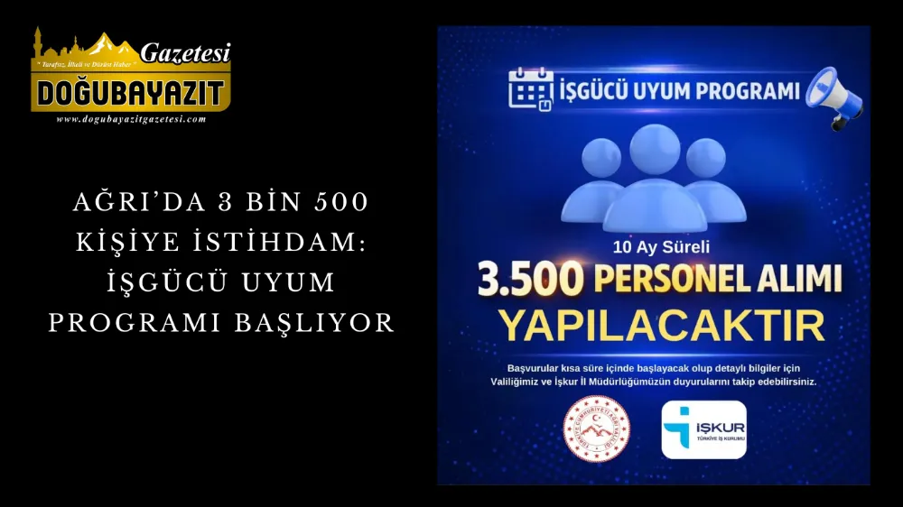 Ağrı’de istihdamı artırmaya yönelik önemli bir program hayata geçiriliyor. Türkiye İş Kurumu (İŞKUR) ile Valilik iş birliğinde yürütülecek İşgücü Uyum Programı kapsamında toplam 3 bin 500 personel alımı yapılacağı duyuruldu.