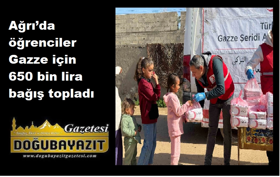 Ağrı İl Milli Eğitim Müdürlüğü ile Türk Kızılay Ağrı Şubesinin Ramazan ayı dolayısıyla yürüttüğü "Gazze’ye Kardeş Eli" yardım kampanyasında öğrencilerin katkılarıyla 650 bin lira bağış toplandı.