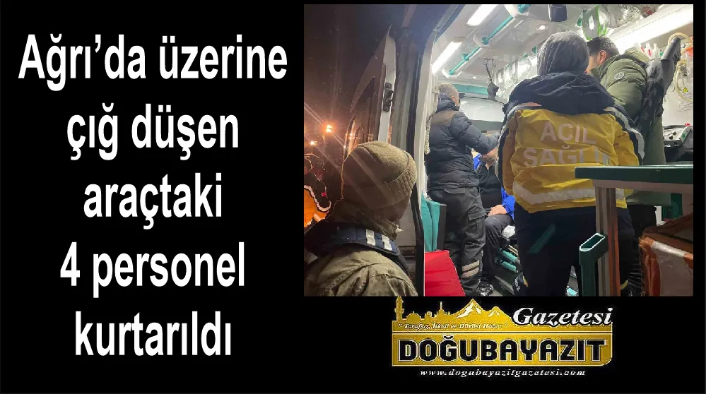 Ağrı’nın Eleşkirt ilçesine bağlı Türkeli köyü sınırlarında bulunan verici istasyonunda meydana gelen arızaya müdahale etmek üzere istasyona intikal halinde olan, içerisinde 4 personelin bulunduğu aracın üzerine çığ düştü. Çığ olayının ardından araçta bulunan personel kendi imkanlarıyla araçtan çıkmayı başardı. İhbar üzerine bölgeye paletli araçla AFAD, UMKE ve jandarma ekipleri sevk edildi. Ekiplerin koordineli çalışması sonucu 4 personel bulundukları noktadan alınarak güvenli alana ulaştırıldı.