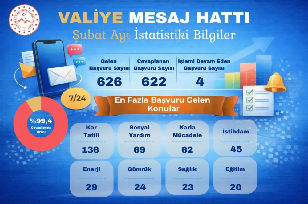 Ağrı Valiliği tarafından vatandaşların taleplerini, önerilerini ve şikâyetlerini aracısız bir şekilde iletebilmeleri amacıyla hayata geçirilen “Valiye Mesaj Hattı”, kısa sürede halkın en önemli çözüm kapısı haline geldi. 2 Şubat 2026 tarihinde hizmete giren hat, ilk ayında yoğun bir başvuru trafiğine sahne oldu.