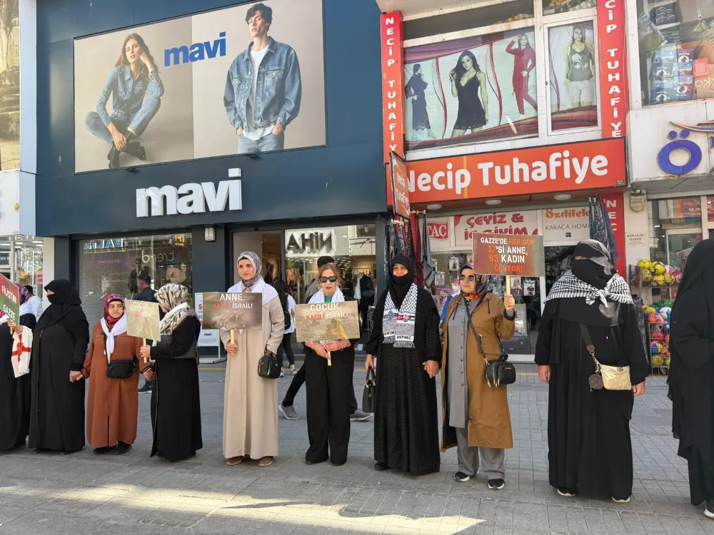 Etkinlikte, Gazzeli bir annenin şu sözleri hatırlatıldı: “Bir torba un getirip çocuklarımın karnını doyurabileceğimi bilsem, ölüme razı olurum.” Kadınlar bu sözlerin altını çizerek, “Biz onun sesi olmak için buradayız” mesajını verdi.