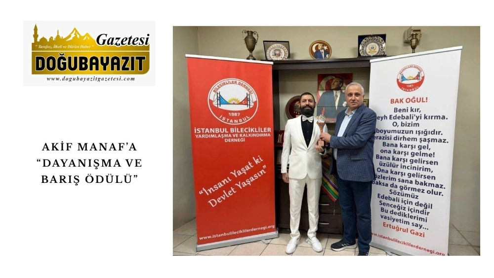 International Peace Prize ödüllü, Nobel Barış Ödülü adayı, barış aktivisti ve yazar Akif Manaf, küresel barışın sağlanmasına yönelik çalışmaları ve dayanışma bilincinin yaygınlaştırılmasına sunduğu katkılar nedeniyle “Dayanışma ve Barış Ödülü”ne layık görüldü. Ödül, Bilecikliler Yardımlaşma ve Kalkındırma Derneği Başkanı Faruk Şahin tarafından takdim edildi.