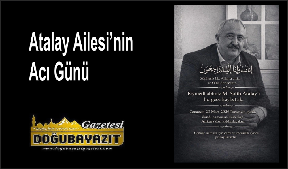 Doğubayazıt Gazetesi yönetimi olarak, Atalay Ailesi başta olmak üzere tüm yakınlarına sabır ve başsağlığı diliyor, merhuma Allah’tan rahmet temenni ediyoruz.