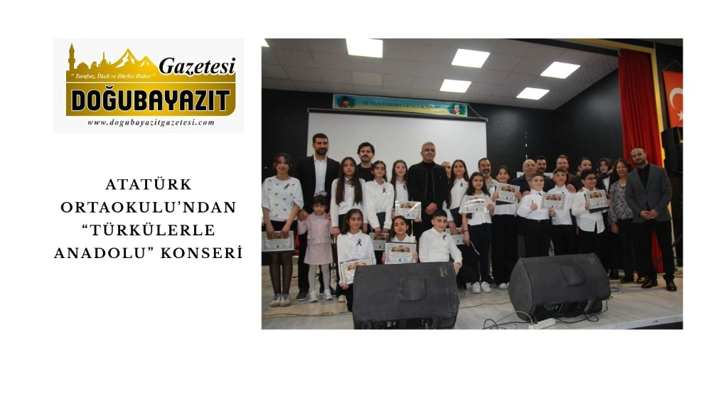 Doğubayazıt’ta Atatürk Ortaokulu öğrencileri tarafından hazırlanan “Türkülerle Anadolu” konseri, İlçe Milli Eğitim Müdürlüğü Konferans Salonu’nda gerçekleştirildi.