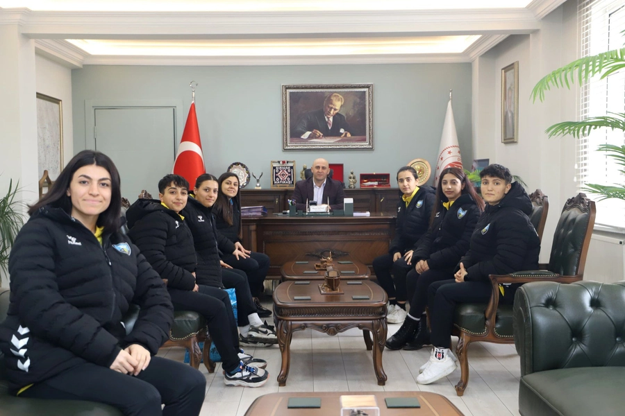 Bayazitspor Kadın Futbol Takımı, Kulüp Başkanı Canan Dursun ve futbolcuların katılımıyla Doğubayazıt Kaymakamı Murat Ekinci’yi makamında ziyaret etti.