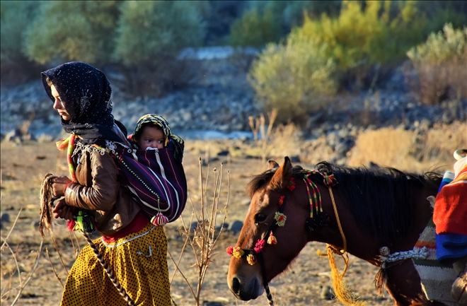 Bu yolculukta erkekler koyun sürülerini otlatarak ilerlerken, kadın ve çocuklar topladıkları çadır ve eşyaları katır ve eşeklere yükleyerek yola koyuluyor.