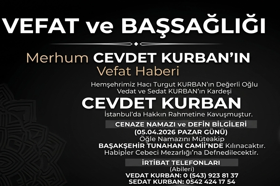 Hemşehrimiz Hacı Turgut Kurban’ın oğlu, Vedat ve Sedat Kurban’ın kardeşleri Cevdet Kurban İstanbul’da vefat etmiştir.