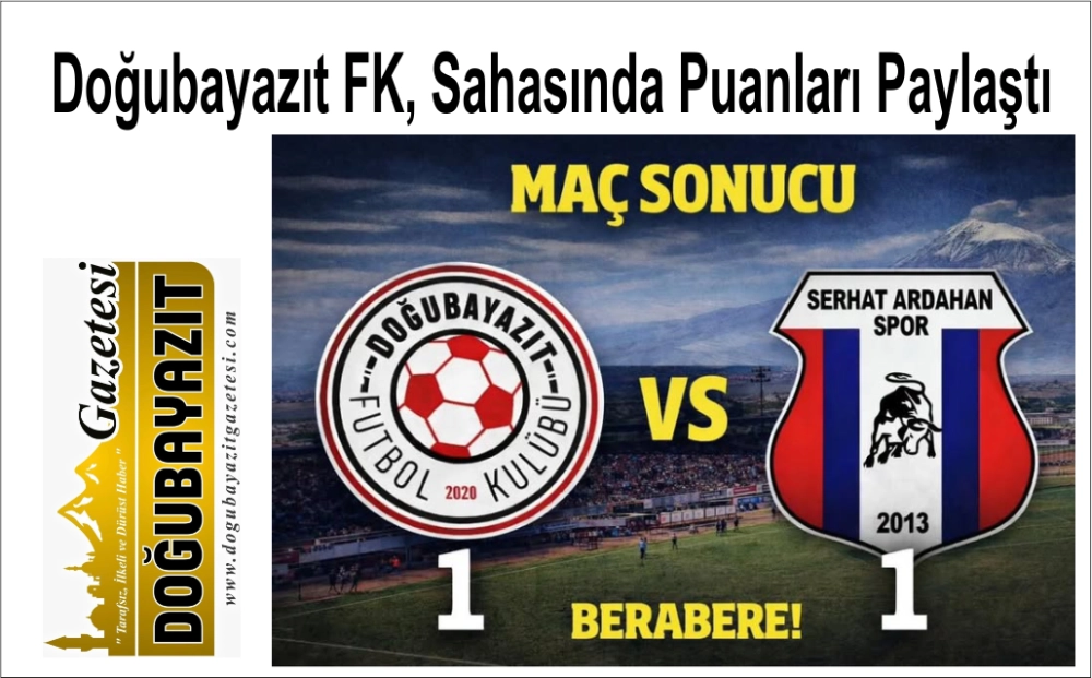 Bölgesel Amatör Lig (BAL) temsilcimiz Doğubayazıt Futbol Kulübü, kendi evinde ağırladığı Serhat Ardahan Spor ile 1-1 berabere kalarak haftayı bir puanla kapattı.
