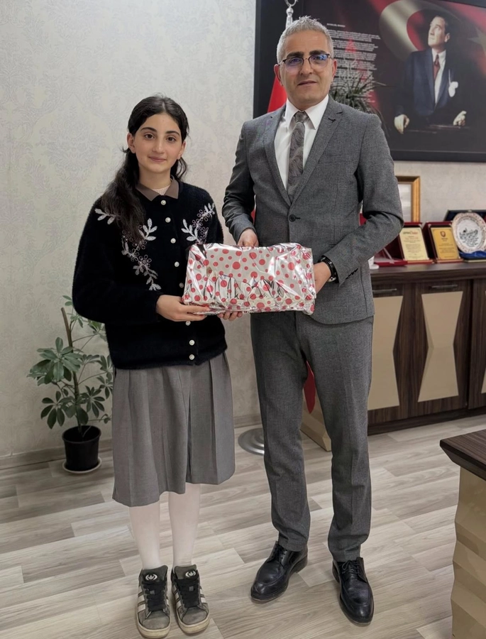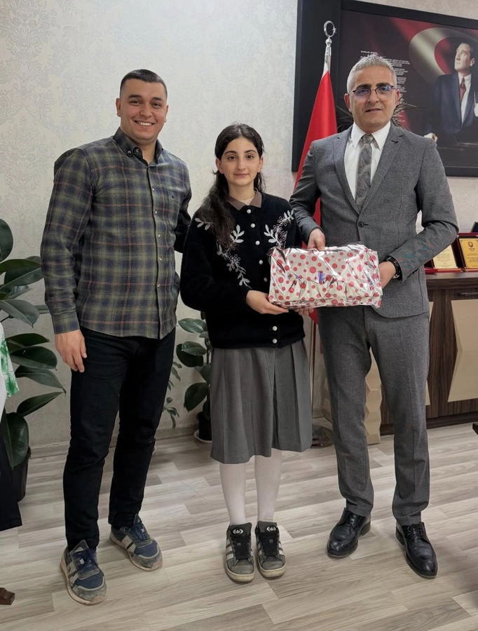 “Peygamberimi Anlatıyorum” hitabet yarışmasında ilçe birincisi ve il ikincisi olan Halife Yusuf İmam Hatip Ortaokulu öğrencisi ile “İstiklal Marşı Gençlik Ruhu Burada Mektup Yarışması”nda il birincisi olan Selahaddin Eyyubi Ortaokulu öğrencisine hediyeleri takdim edildi.