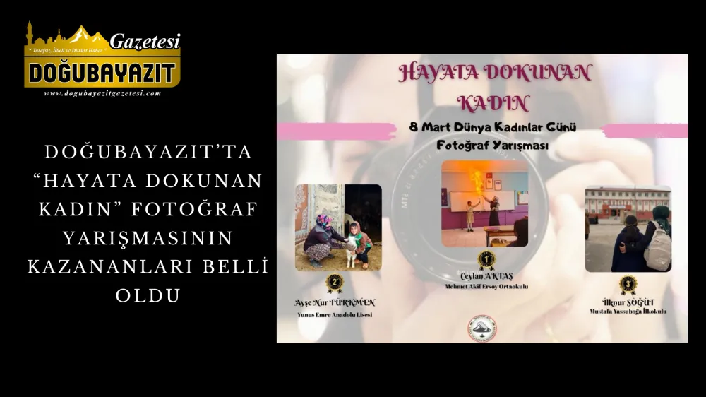 Doğubayazıt İlçe Milli Eğitim Müdürlüğü tarafından 8 Mart Dünya Kadınlar Günü kapsamında düzenlenen “Hayata Dokunan Kadın” temalı öğretmenler arası fotoğraf yarışmasının sonuçları açıklandı.