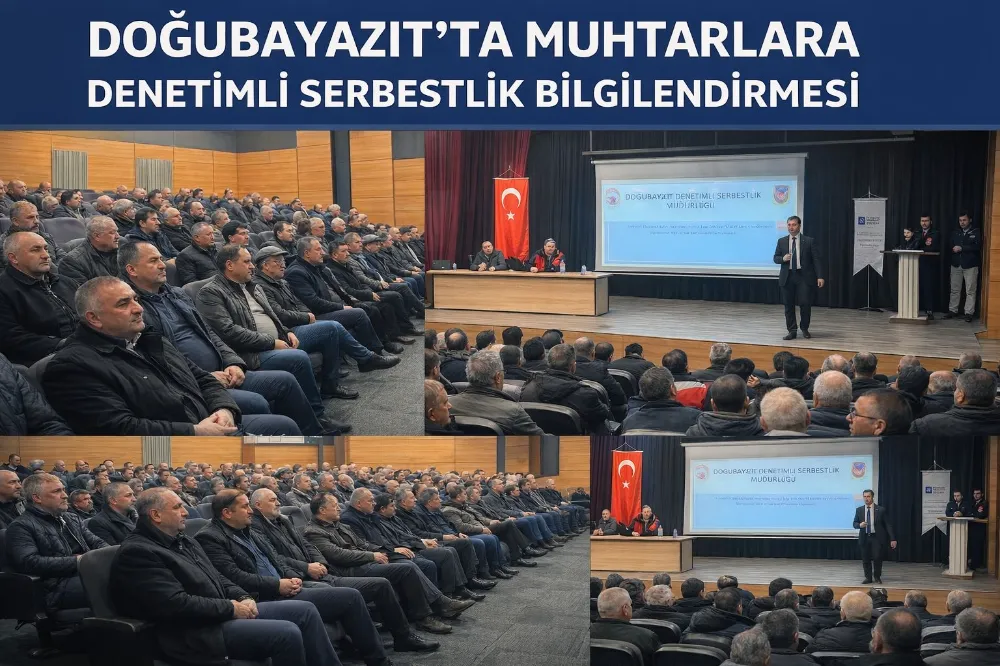 Doğubayazıt Denetimli Serbestlik Müdürlüğü öncülüğünde düzenlenen muhtarlar toplantısında, denetimli serbestlik kurumunun tanıtımı yapılarak iş ve işleyişine ilişkin kapsamlı bilgilendirme gerçekleştirildi.