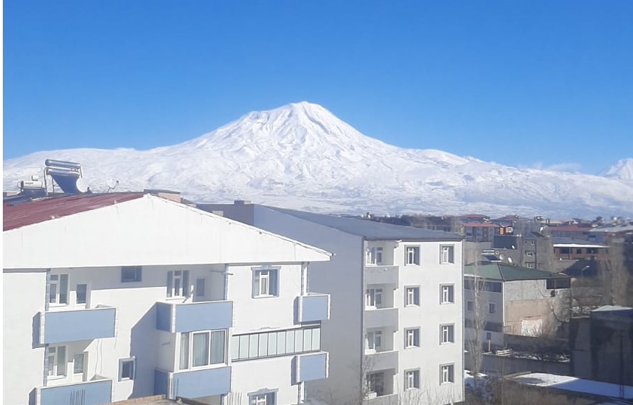 Doğubayazıt’ta bugün hava 3°C ve güneşli; batıdan esen 3 mph hızındaki hafif rüzgar ve %75 nem oranıyla kış güneşinin tadı çıkarılıyor. Gökyüzünün açık olmasıyla birlikte, 5 bin 137 metre yüksekliğiyle "Türkiye'nin Çatısı" olarak bilinen Ağrı Dağı, tüm heybetiyle kendini göstererek izleyenleri kendine hayran bırakıyor.