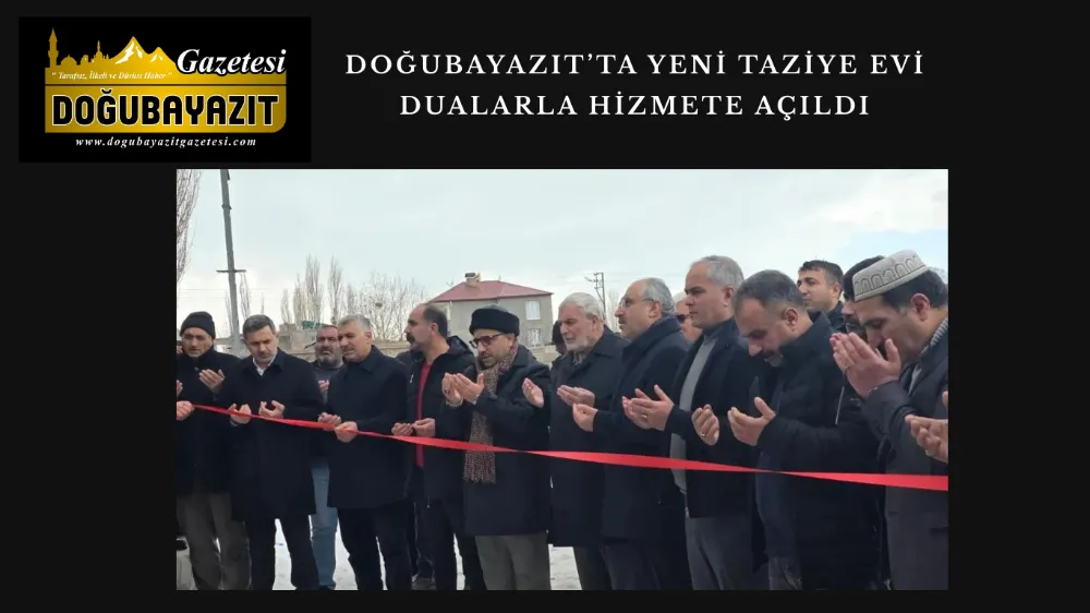 Doğubayazıt’ta Hürriyet Mahallesi’nde inşa edilen yeni taziye evi, düzenlenen programla dualar eşliğinde hizmete açıldı. Açılışa İlçe Müftüsü İsa Demirkaynak başta olmak üzere Belediye Başkanı Kenan Alkan, AK Parti İlçe Başkanı Mehmet Sena Geçit, Dağ Arama Kurtarma (DAK) Dernek Başkanı Mehmet Sebih Tanrıverdi ve çok sayıda mahalle sakini katıldı.