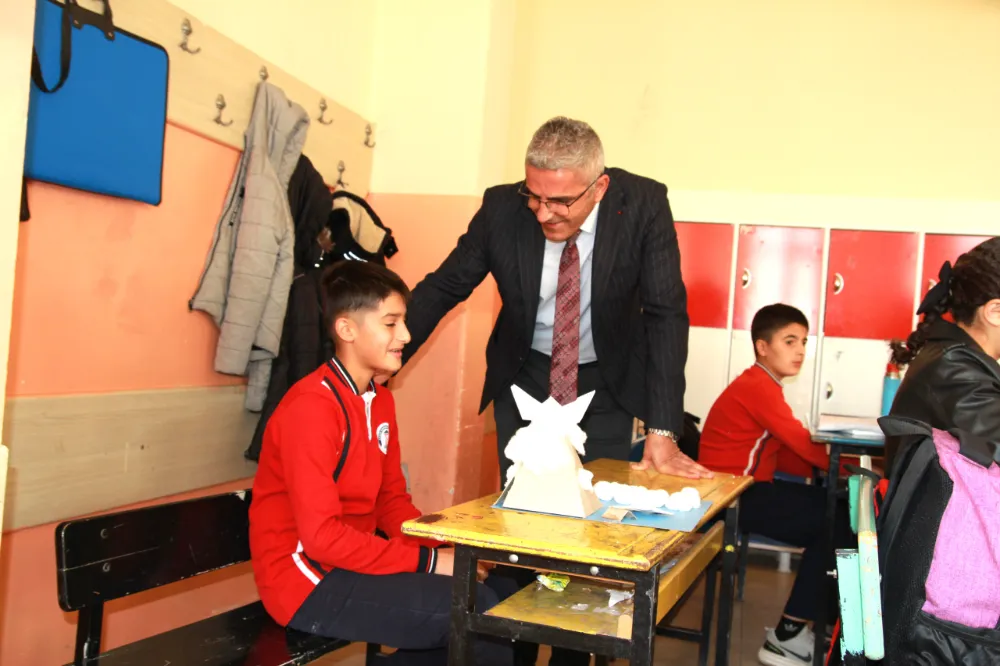 Ziyaret kapsamında sınıfları da tek tek gezen İlçe Millî Eğitim Müdürü, öğrencilerle yakından ilgilenerek onların derslerine ve hedeflerine dair sohbet etti. Öğrencilere başarı dileklerinde bulunan Şen, “Her sabah eğitimle uyanan bir nesil, geleceğini umutla inşa eder.” diyerek öğretmenlere ve öğrencilere moral verdi.