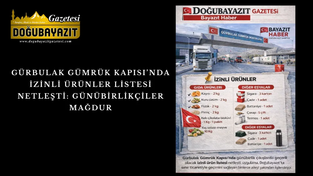 Doğubayazıt’ta sınır ticaretiyle geçimini sağlayan binlerce vatandaşı yakından ilgilendiren izinli ürünler listesi belli olurken, uygulamanın günübirlikçiler açısından mağduriyet oluşturduğu yönünde tepkiler de yükselmeye başladı. Gürbulak Gümrük Kapısı’ndan günübirlik çıkışlarda yurda sokulmasına izin verilen ürünler kamuoyu ile paylaşıldı.