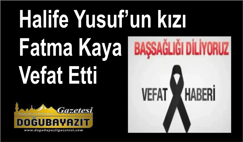 Doğubayazıt’ın Karaşeyh köyünden Halife Yusuf Topçu’nun kızı ve Şeyh İsmail Kaya’nın eşi olan Fatma Kaya’nın vefatı bölge halkını üzüntüye boğdu. Merhume, babası Xalife Yusuf’un manevi mirasını taşıyan bir aileden geliyordu.