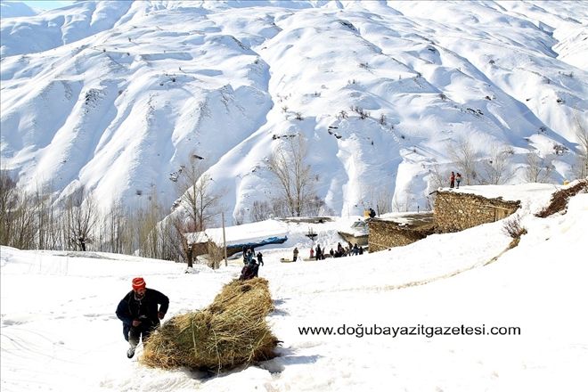 Sabahın ilk ışıklarıyla, 3 bin 537 metre yüksekliğindeki Kepçe Dağı´na kızaklarla tırmanmaya başlayan besiciler, yer yer 2 metreyi bulan kara bata çıka zirveye ulaşıyor. Besiciler, kızaklara yükledikleri ot balyalarını 3 saat süren zorlu yolcuğun ardından hayvanlarının önüne koyuyor.