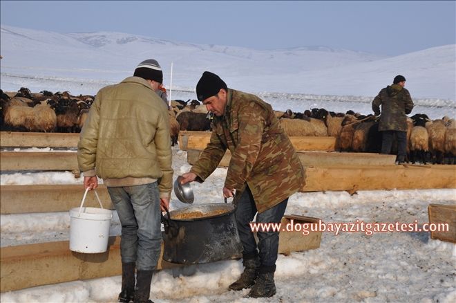Kışın dışarıda ot ve saman verdikleri hayvanların, özellikle de gebe koyunların soğuktan etkilendiğini anlatan Akdeniz, "Kardan set yaparak, hayvanlarımızı rüzgar ve soğuktan korumaya çalışıyoruz. Setlerin arasında hayvanlarımıza yem veriyoruz." diye konuştu.