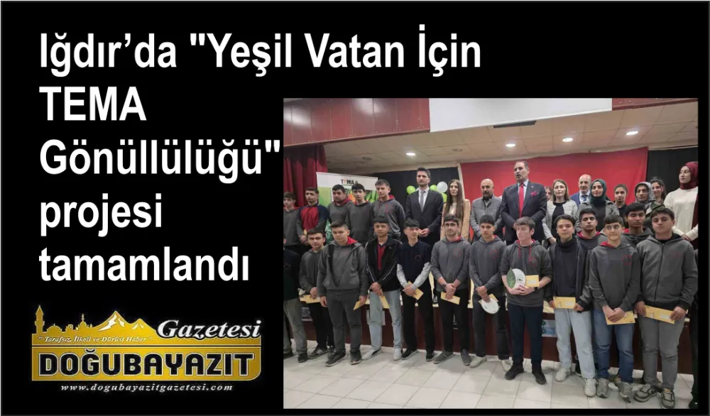 Iğdır Aras Ticaret Mesleki ve Teknik Anadolu Lisesi’nde öğretmenler Meryem Bakraç Ağcayazı ve Figen Doğan tarafından yürütülen "Yeşil Vatan İçin TEMA Gönüllülüğü" Sosyal Sorumluluk Projesi’nin kapanış töreni geniş katılımla gerçekleştirildi. Törene Aziz Gün, TEMA Vakfı İl Temsilcisi Muhammed Turan ve yönetim kurulu üyeleri ile okulun öğretmen ve öğrencileri katıldı.