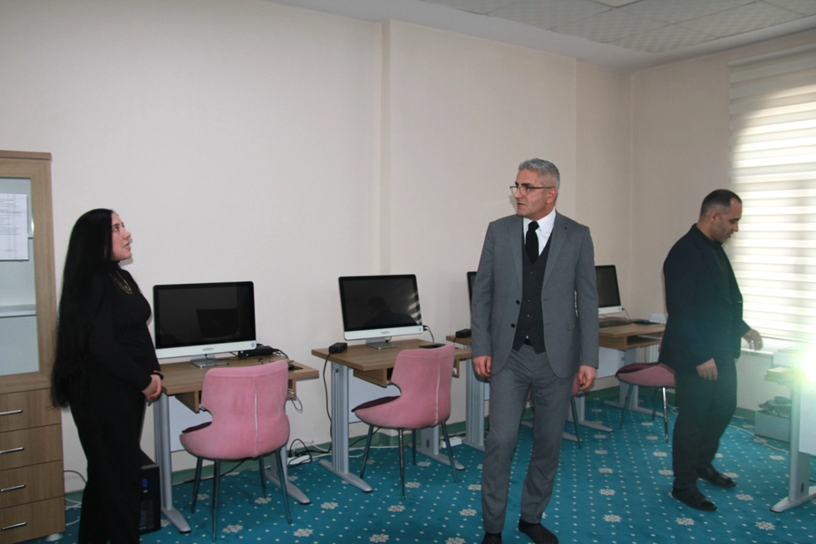Aynı merkezde Halk Eğitim Merkezi Müdürlüğüne bağlı olarak sürdürülen Bilgisayar Kursu ile Dikiş-Nakış Kursu da ziyaret edildi. Kursiyerlerle sohbet eden Müdür ŞEN, verilen her eğitimin bireylerin sosyal ve ekonomik yaşamına katkı sunduğunu ifade ederek başarı dileklerinde bulundu.