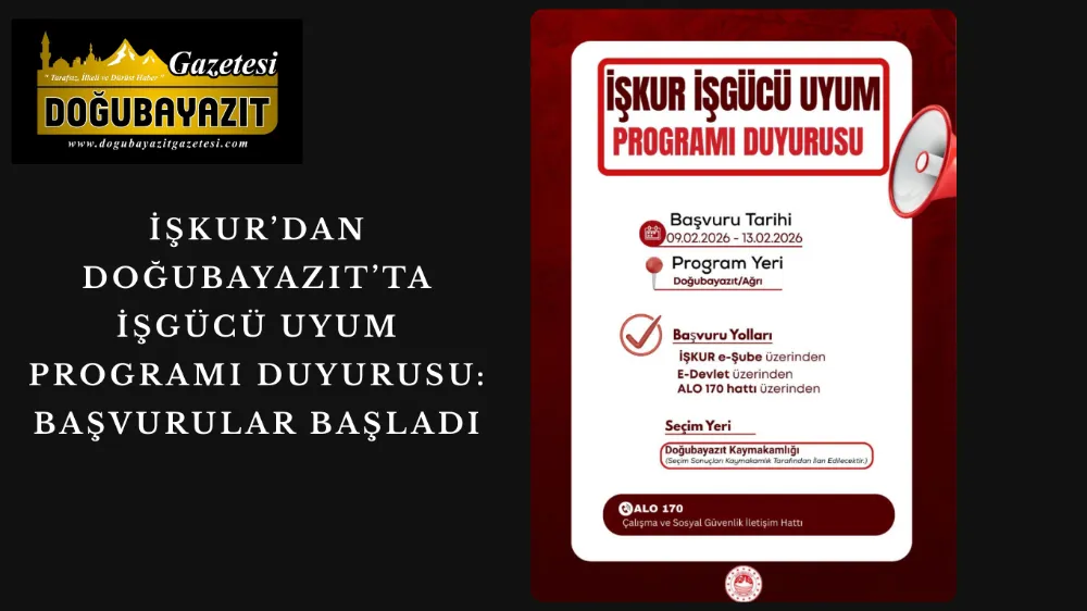 Türkiye İş Kurumu (İŞKUR) tarafından Doğubayazıt’ta hayata geçirilecek olan İşgücü Uyum Programı için başvuru süreci başladı. Program kapsamında vatandaşlara istihdam alanında yeni fırsatlar sunulması hedefleniyor.
