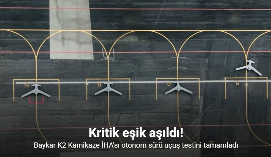 Baykar tarafından geliştirilen K2 Kamikaze İHA, Yapay Zeka Otonom Sürü Uçuş ve Hava Devriye testini başarıyla gerçekleştirdi.