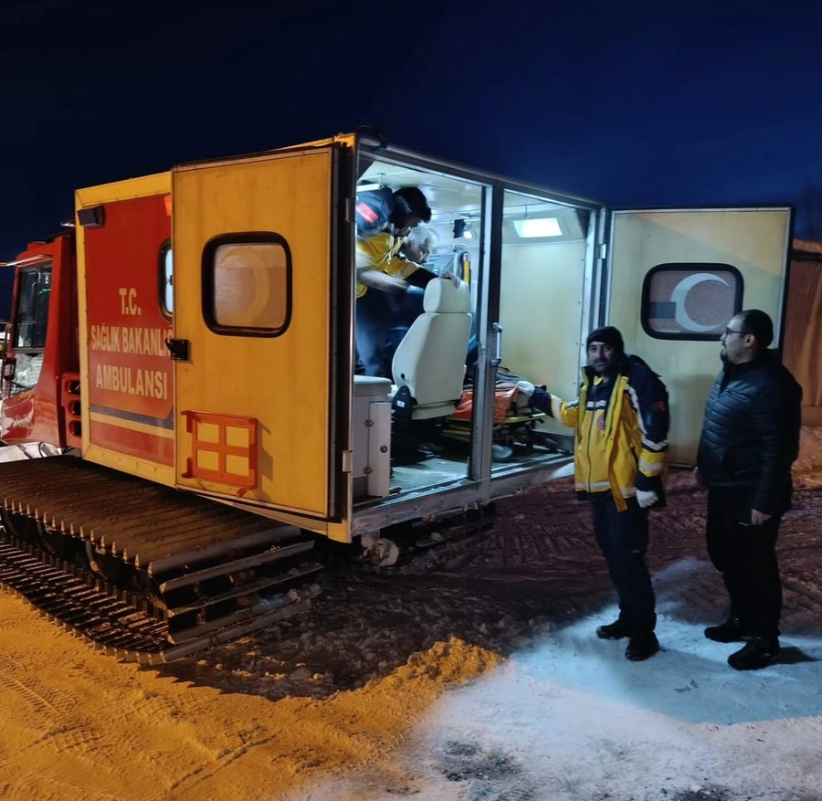 Kardiyak öyküsü bulunan hastanın bulunduğu bölgede yoğun kar yağışı ve kapalı köy yolları nedeniyle ulaşım güçlükle sağlandı. İl Özel İdaresi ekiplerinin desteğiyle yol açma çalışmaları yürütülürken, kar paletli ambulanslar da hızla devreye alındı.