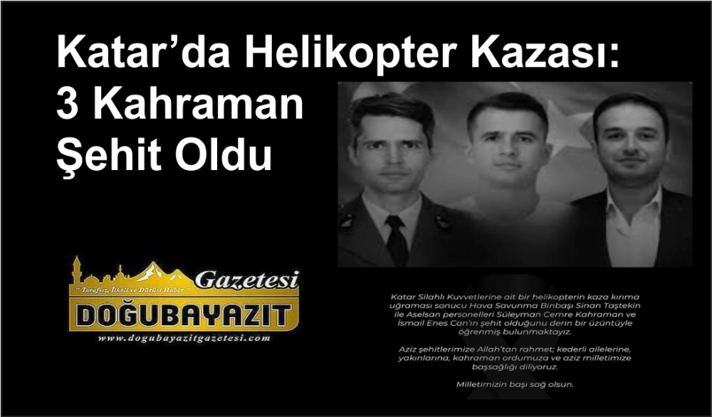 Katar Silahlı Kuvvetleri’ne ait bir helikopterin kaza kırıma uğraması sonucu, Hava Savunma Binbaşı Sinan Taştekin ile ASELSAN personelleri Süleyman Cemre Kahraman ve İsmail Enes Can’ın şehit olduğu bildirildi.