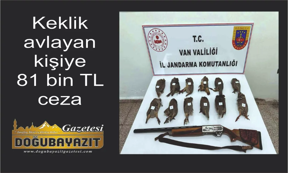 Van’ın Erciş ilçesinde keklik avlayan kişiye 81 bin 441 TL idari para cezası kesilirken, kaçak avlanılan 12 kekliğe el konuldu.