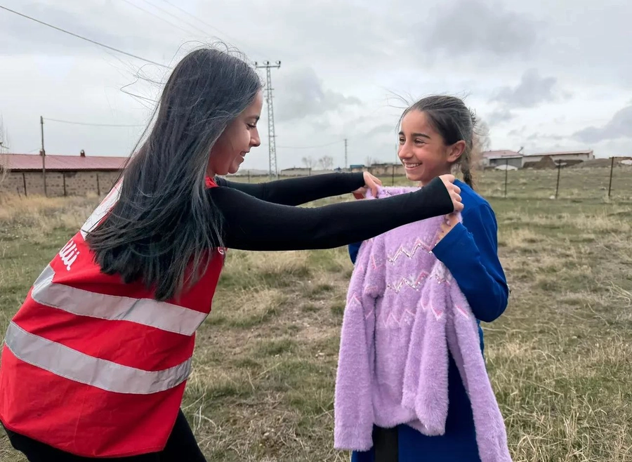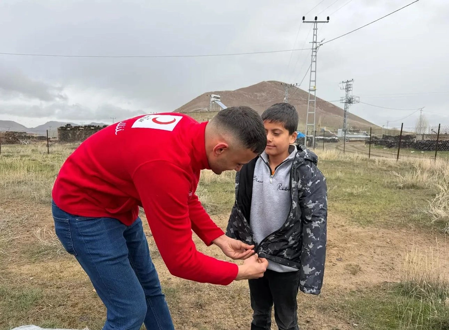 Gönüllülerle birlikte gerçekleştirilen etkinlikte, köyde yaşayan aileler ve özellikle çocuklar için kışlık giyim desteği sağlandı. Soğuk kış şartlarında ihtiyaç sahiplerinin yanında olan Kızılay ekipleri, miniklerin yüzünü güldürerek gönüllere dokundu.