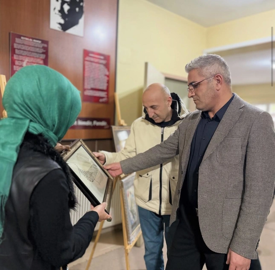Doğubayazıt Halk Eğitim Merkezi, Ramazan ayının manevi iklimini sanatın zarafetiyle buluşturan anlamlı bir etkinliğe ev sahipliği yaptı. “Sanatın Diliyle Değerlerimiz Sergisi” adıyla düzenlenen programda, kursiyerler tarafından hazırlanan hat, tezhip ve ebru sanatına ait eserler görücüye çıktı.