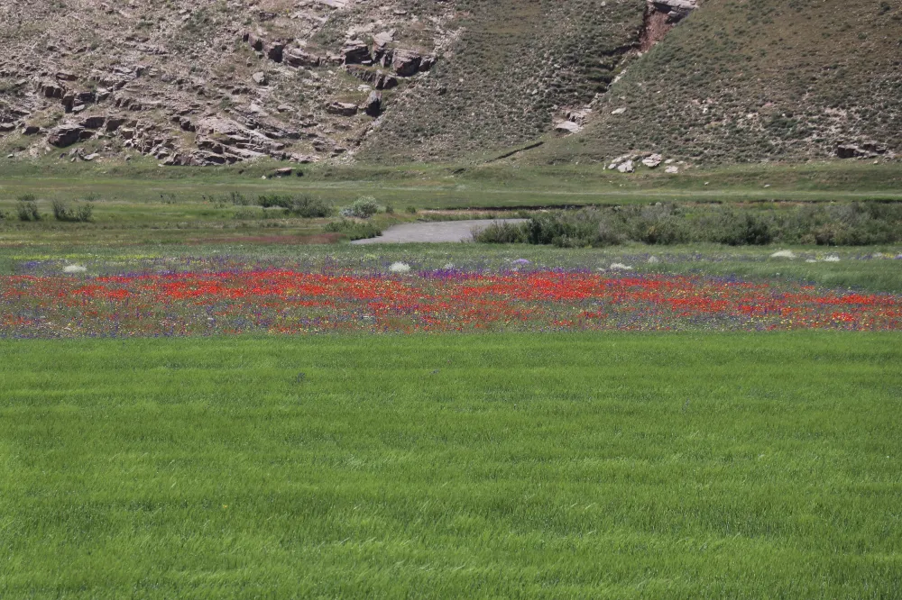 Taşlıçay ilçesindeki tarlalar, sarı, mor, pembe ve kırmızı çiçeklere büründü.