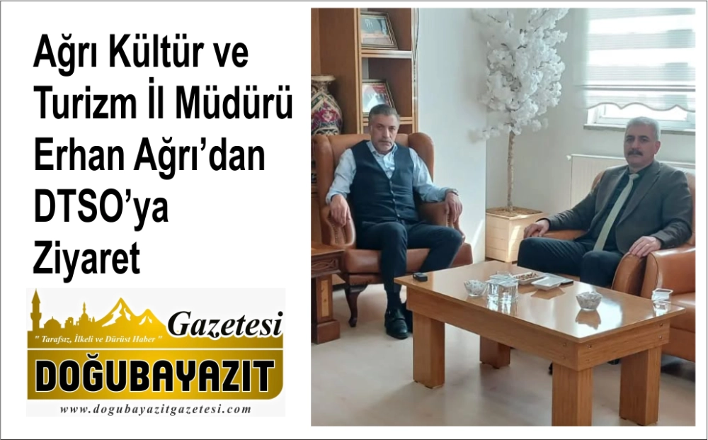 Ağrı İl Kültür ve Turizm Müdürü Erhan Ağrı, Doğubayazıt Ticaret ve Sanayi Odası (DTSO) Yönetim Kurulu Başkanı Cemal Can’ı makamında ziyaret etti. Bölge turizminin geleceğinin masaya yatırıldığı görüşmede, kurumlar arası iş birliği mesajı ön plana çıktı.