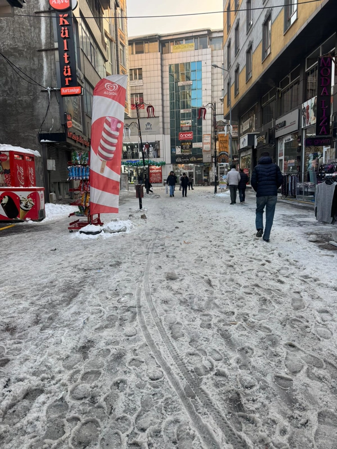 Vatandaşlar kayma ve düşme tehlikesiyle karşı karşıya kalırken, sürücüler de daralan yollarda ilerlemekte güçlük çekiyor. Kar yağışının kesilmesine rağmen çalışmaların gecikmesi, şehir genelinde ulaşımı zorlaştıran önemli bir sorun olarak öne çıkıyor.