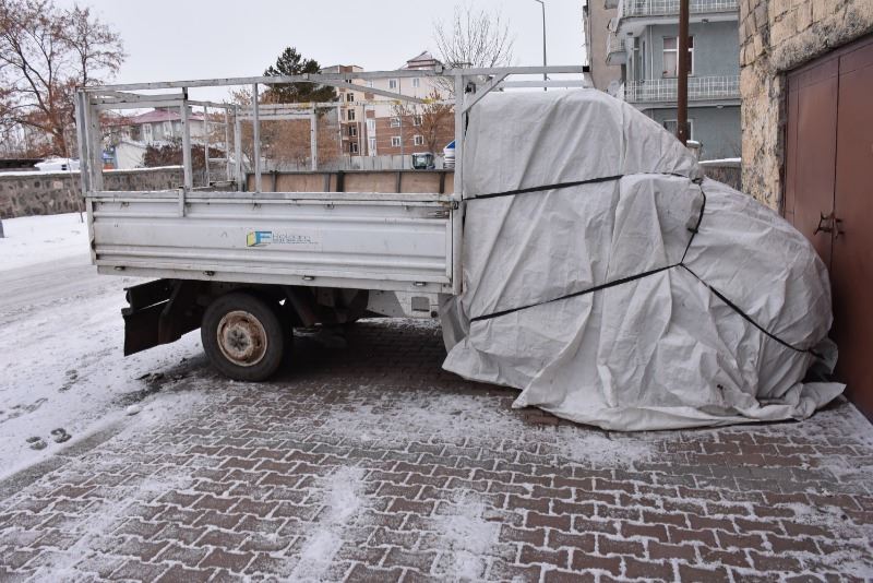 Bazı vatandaşlar araçlarının üzerini battaniye, branda ve çadırlarla örterek soğuktan korumaya çalıştı.