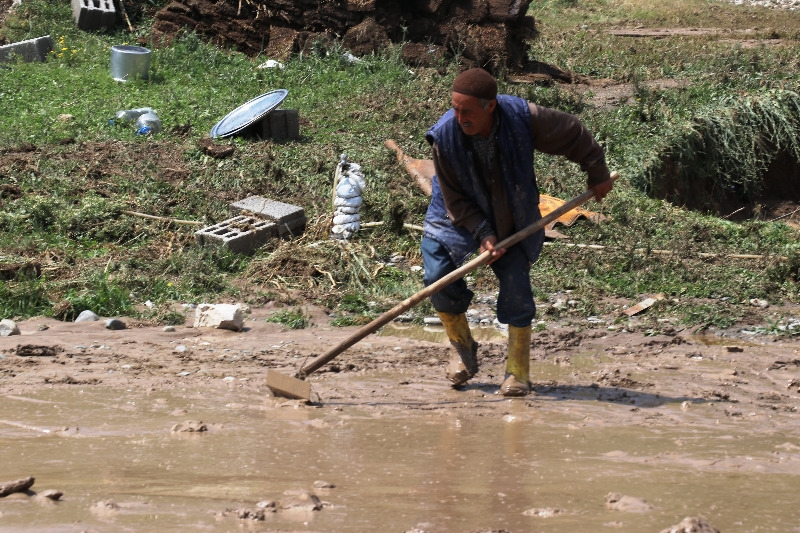 Tarım arazileri ve ahırların da zarar gördüğü köyde İl Özel İdaresi ve Devlet Su İşleri ekipleri çalışmalarını sürdürüyor.
