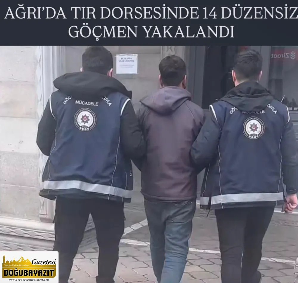 Ağrı İl Emniyet Müdürlüğü ekiplerince il merkezinde gerçekleştirilen uygulama sırasında durdurulan bir tırın dorsesinde yapılan aramada 14 düzensiz göçmen yakalandı.