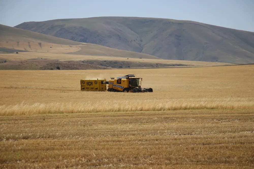 Ağrı'nın bereketli ovalarındaki buğday tarlalarında biçerdöverlerle hasat heyecanı yaşanıyor.
