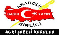 Ağrı da 3. Gazeteciler örgütü de kuruluşunu tamamladı. Ağrı da kurulan Anadolu Basın Birliğ şubesi başkan, Alirıza Aydemir in yönetimine çalışmalarına başladı. Başkan Aydemir ayağının tozu ile ilçelerde görev yapan gazetecilerle görüştü.