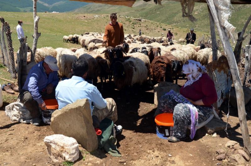Besiciler, et ve sür veriminin artırmak için koyun, keçi, kuzu ve oğlaklardan oluşan sürülerini, zorlu yolculuğun ardından yaylalara çıkarıyor.