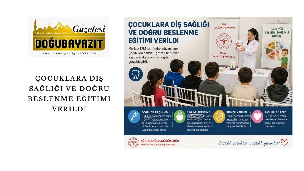 Ağrı İl Sağlık Müdürlüğü’ne bağlı Merkez Toplum Sağlığı Merkezi (TSM) tarafından düzenlenen Çocuk Akademisi Eğitim Etkinlikleri kapsamında, çocuklara yönelik önemli bir eğitim programı gerçekleştirildi. Programda, diş sağlığı ve doğru beslenme konularında bilgilendirme yapıldı.