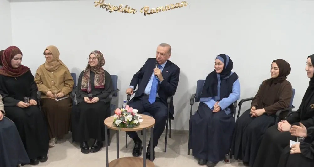 Öğrencilerle sohbet eden Erdoğan, "Alkışlanacak bir süreçtesiniz. Burada devam eden bu talebelik yıllarınızı bir büyüğünüz olarak çok önemsiyorum. Aynı zamanda bir İmam Hatipli olarak önemsiyorum" dedi.