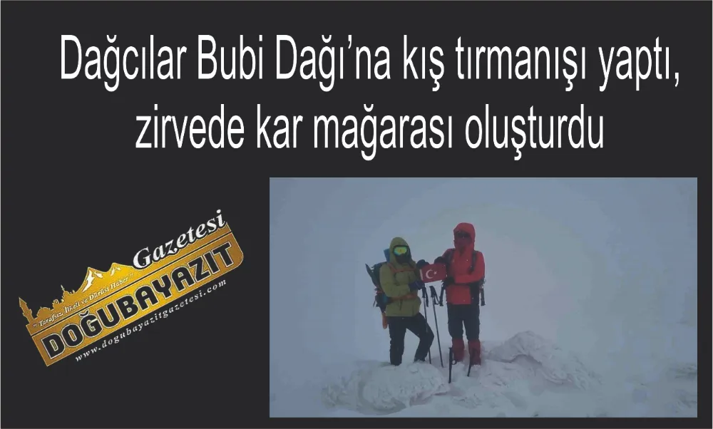 Ağrı il merkezine yaklaşık 18 kilometre mesafede yer alan Bubi Dağı, hafta sonu gerçekleştirilen kış tırmanışıyla dağcılara ev sahipliği yaptı. Üç kişilik dağcı grubu, Bubi Dağı eteklerinde kamp kurarak sabahın erken saatlerinde zirve yürüyüşüne başladı. Zorlu hava koşullarına rağmen tırmanışlarını sürdüren dağcılar, yoğun kar yağışı ve etkili rüzgârla mücadele ederek 2 bin 450 metre rakımlı zirve noktasına ulaştı. Zirvede Türk bayrağı açarak hatıra fotoğrafları çeken ekip, olumsuz hava şartları nedeniyle kısa süreli dinlenme ihtiyacını kar mağarası oluşturarak karşıladı.